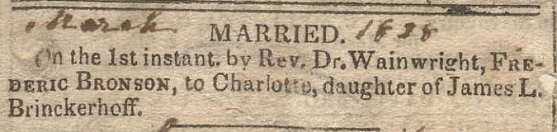 Mrs. Charlotte (Brinckerhoff) Bronson - married 1838